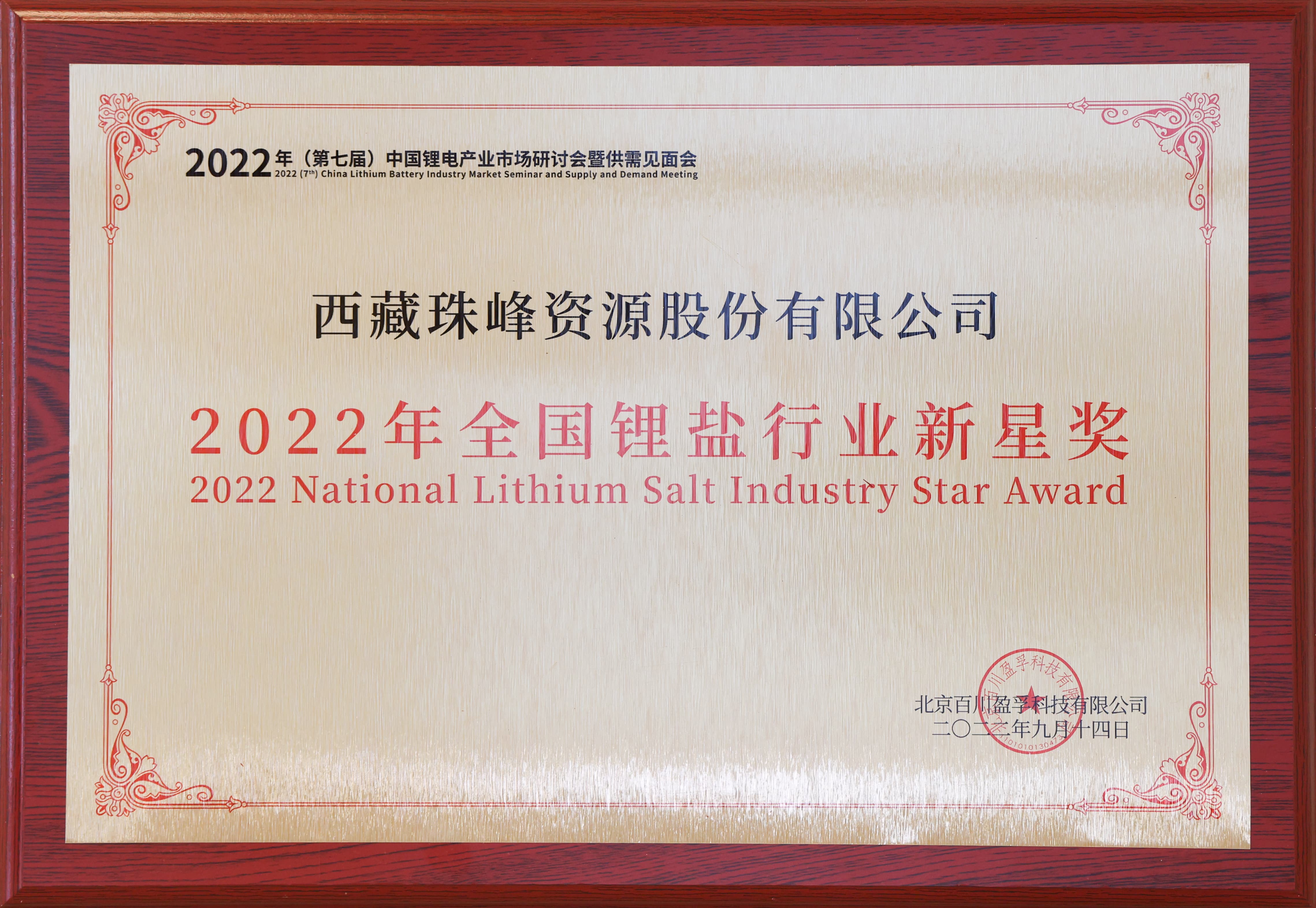 全國鋰鹽行業(yè)新星獎